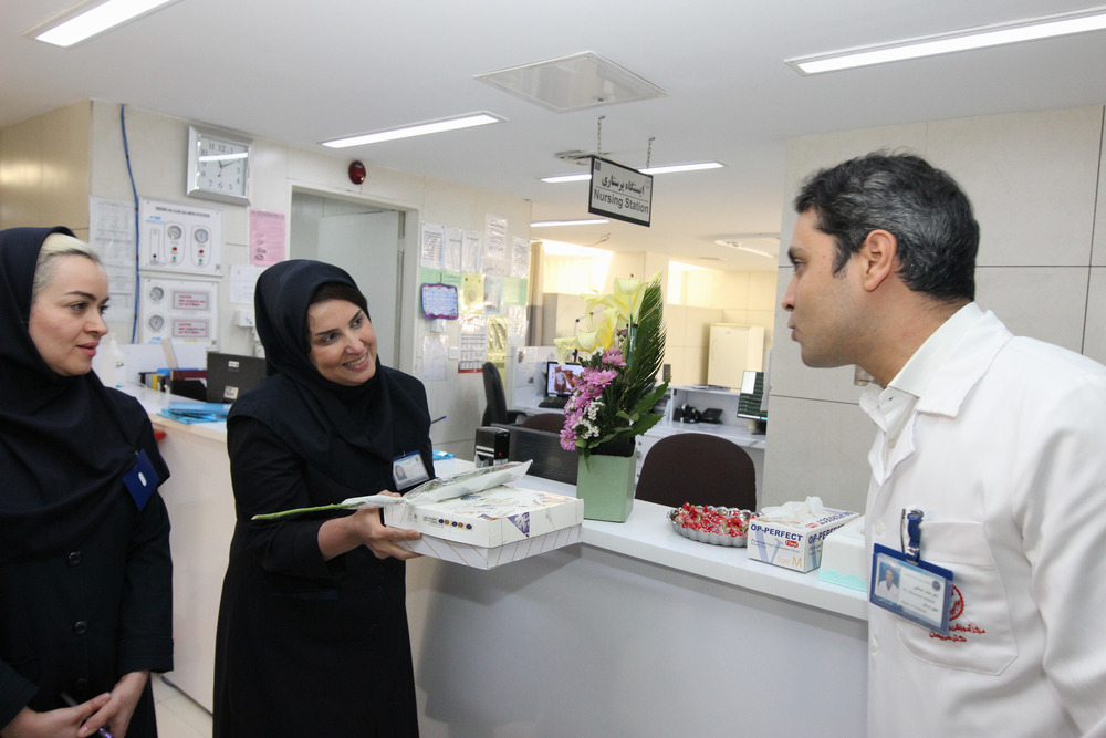 هیات رئیسه بیمارستان دکتر شریعتی با حضور در بخش‌ها، روز پرستار را گرامی داشتند
